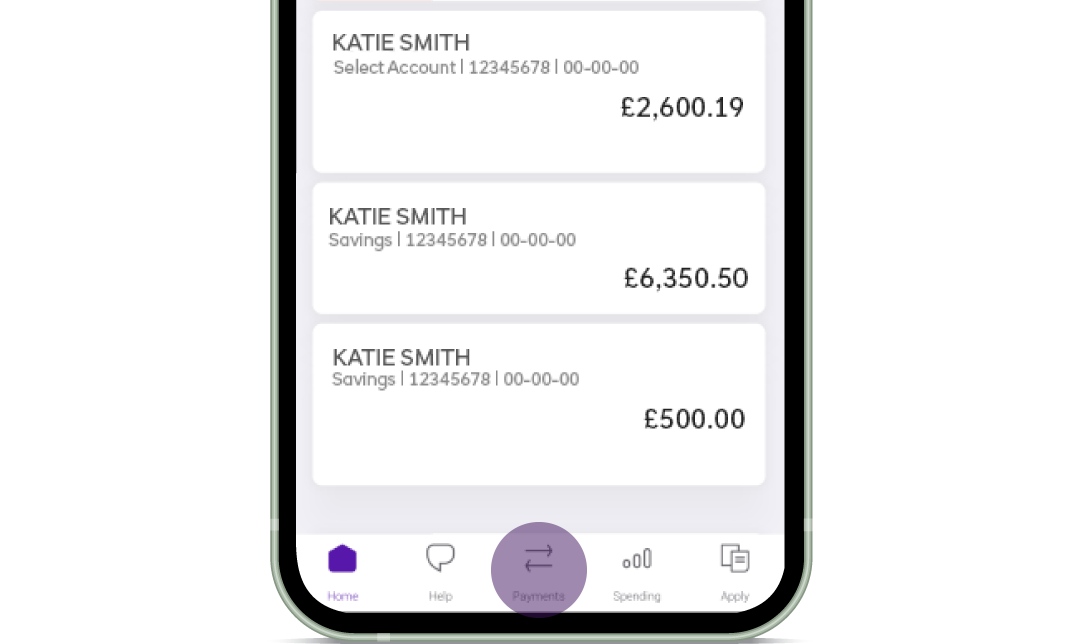 Open the NatWest banking app and select the ‘Payments’ icon at the bottom of the screen. Make sure you have selected the account you wish to make the payment from.
