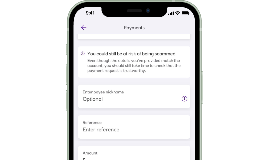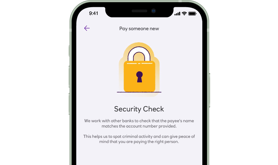 Select ‘Verify payee’ to confirm payee details. Where a Confirmation of Payee (CoP) check is performed you will receive a response to let you know if the name you have entered matches the details for the account. If the response from the payee's bank is ‘close match, no match or unable/unavailable’ we will give you advice on what to do next.