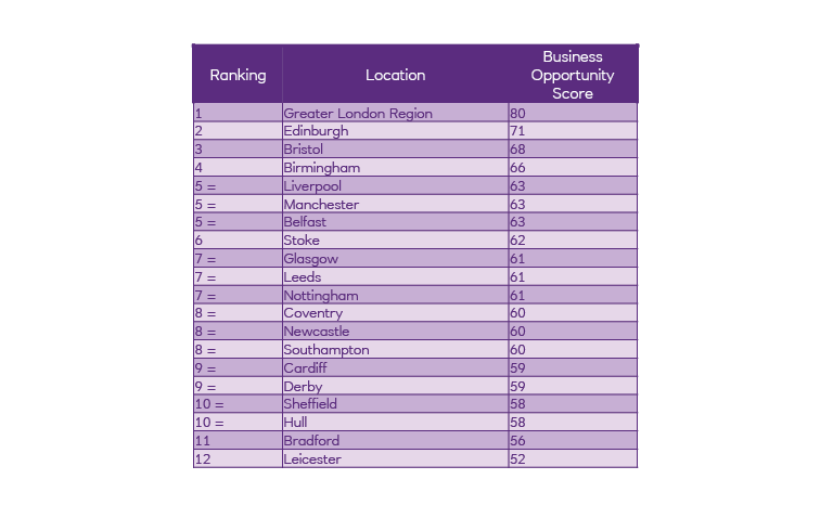 Yet despite its size and population, London doesn’t top every business opportunity list. By breaking our research down into 10 specific themes, other cities get a chance to shine too. And some of the findings may surprise you.