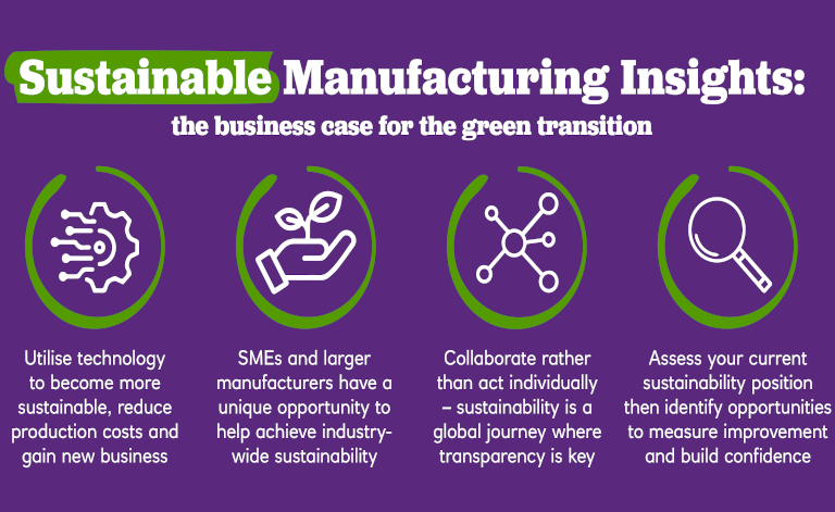 • The main opportunities that sit alongside manufacturers’ growing obligation to be sustainable are reducing production costs and gaining new business