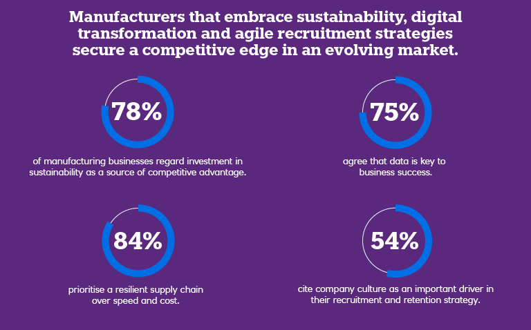 Manufacturers recognise the importance of sustainability, with 78% seeing it as a competitive advantage and 82% believing it engages their workforce.