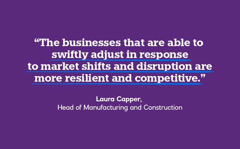 “The businesses that are able to swiftly adjust in response to market shifts and disruption are more resilient and competitive,” says Laura Capper, our Head of Manufacturing and Construction. “They stay finely tuned to the changing needs and preferences of their customers, and to maintaining their market relevance.”