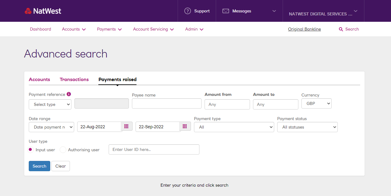 If you’ve received a Bankline Alert about an expired payment, you can find the payment quickly by using the ‘payment status’ filter and selecting ‘expired’. Any expired payments will appear in your search results so you can resolve the issue.