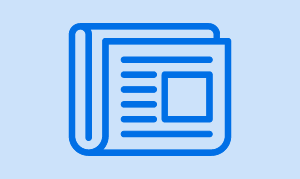 Blue icon of a folded up newspaper. Private Finance Newsletter