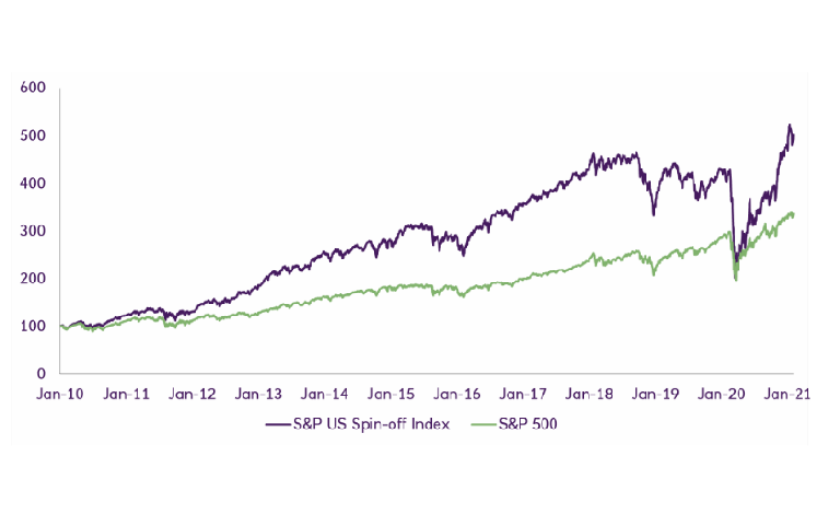 Stocks of spun-off companies have outperformed the broader market in the past 10 years