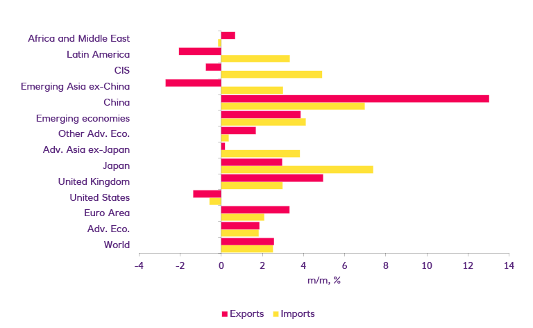 World trade activity edged up last month according to the latest data and supply pressures are finally beginning to show signs of easing.
