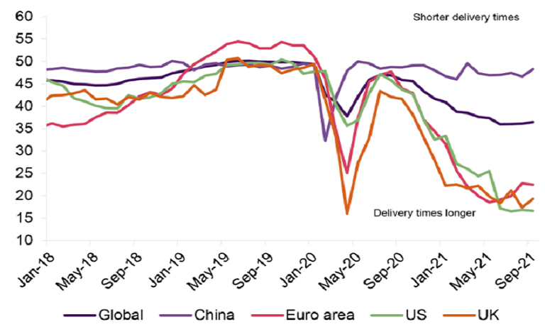 It goes without saying that the bottlenecks above are going to have inflationary effects, but their impact will vary by region and sector. Those that experienced faster recoveries in demand, such as the US, have generally witnessed higher consumer inflationary pressure, while those where the domestic demand recovery has lagged, such as China, are still registering relatively subdued price rises. Manufacturing hubs that mainly import raw materials have seen a more rapid surge in producer price index inflation.