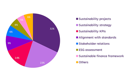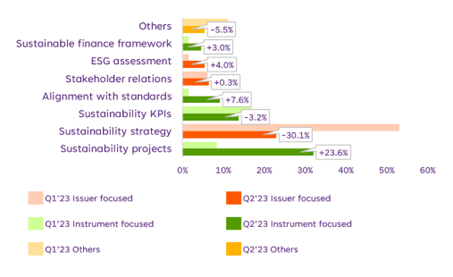 • Alignment with standards (9%) remains a popular topic as observed in previous quarters, and investors still expect transparency from issuers on EU taxonomy and Science Based Targets initiative (SBTi) for their emissions reduction targets.