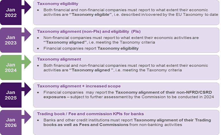 In terms of when, some level of disclosure under Pillar 3 will come into play in 2023 (for period 2022) but the bulk of disclosures will apply from 2024 (by which time banks in theory will have a year’s worth of taxonomy-alignment data from non-financial corporates).