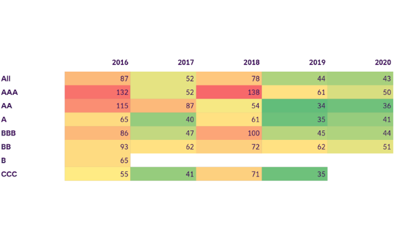 It’s difficult to draw industry-wide conclusions given the small number of downgrades in recent years, but this suggests ESG downgrades are more impactful when CDS spreads for the wider industry are increasing – and when ESG standards are rising across the industry.