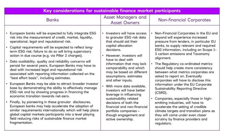 The EU Platform on Sustainable Finance, an advisory body to the European Commission, is expected to publish recommendations on possible extension of the EU Taxonomy to also cover social objectives and transition activities. The Platform will also publish its recommendations on criteria for the rest of the environmental objectives under the EU Taxonomy (sustainable use and protection of water and marine resources; transition to a circular economy; pollution prevention and control; protection and restoration of biodiversity and ecosystems).