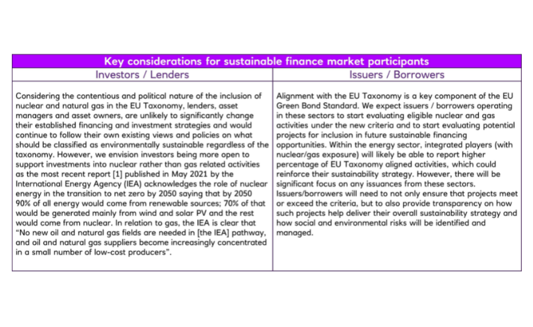 The UK Government is expected to provide its first indication on what activities would count as "green" in the UK and on the level of alignment with the EU Taxonomy. They will consult on technical criteria for economic activities relating to climate change mitigation and adaptation environmental objectives, as outlined in its roadmap to greening finance and sustainable investing† published in October 2021.