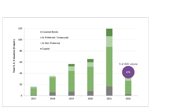 €5.6bn was issued in EUR, which remains the dominant currency (6 of the 8 tranches), with the other two tranches in USD (€1.2bn equiv). The two Covered bonds which priced in February were both from Germany and led by NatWest, with the remaining transactions in SNP / HoldCo format from issuers across Japan, Germany, Belgium and the Nordics. The oversubscription average was 2.2x within a range of 1.7-2.7x.