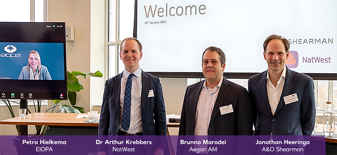 NatWest and Allen & Overy Shearman were delighted to host the second annual Netherlands Green Finance Conference on 30 January 2025, bringing together key market participants to discuss pertinent developments. These discussions were initiated by a plenary discussion with Petra Hielkema (Chairperson of EIOPA) and Brunno Maradei (Head of Responsible Investment at Aegon AM).