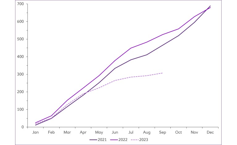 Annual sustainable lending volumes show signs of plateauing as we approach year end