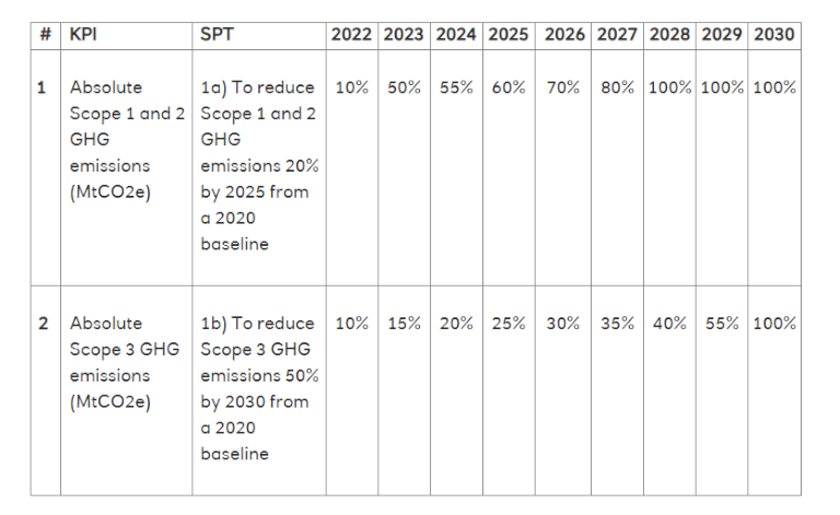 • Their framework includes projected Scope 1 & 2 and Scope 3 greenhouse gas (GHG) emissions reduction targets for every year until 2030 (net-zero target)