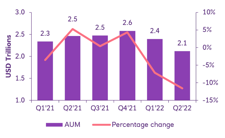 Total AUM is equal to USD2.1 trillion for fund asset classes and countries charts as of end of Q2 2022.