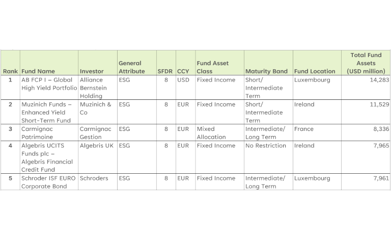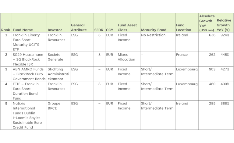 • Three of the top five fastest growing funds were “short-term” focussed suggesting the appetite for this maturity band as investors navigate a more volatile market environment and look to lower their portfolios’ duration