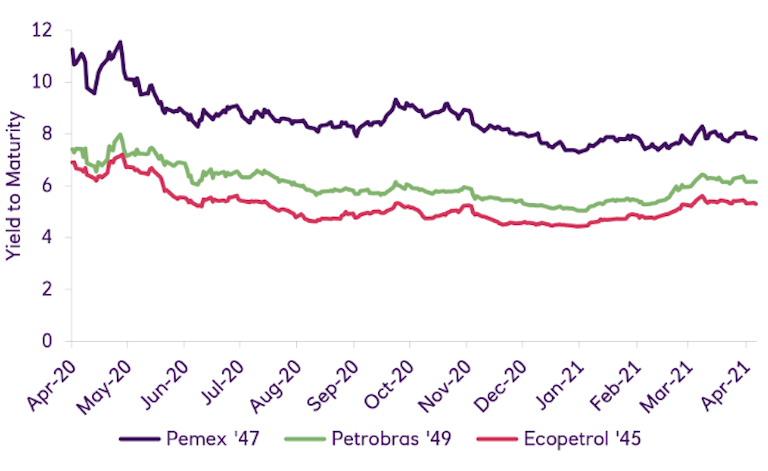 This blending of corporate & sovereign balance sheets creates perverse market incentives. The more the company struggles, the more support it receives from the state, which – at least in the short-term – anchors its financial performance and papers over its poor decarbonisation record. But Pemex’s large outstanding debt and broad inclusion in major emerging market bond indices means it forms an integral part of many investors’ portfolios; excluding it could dent fund performance. This is likely one of the main reasons why, despite no shortage of calls for greater transparency and progress on decarbonisation, we’ve seen little evidence of ESG factors influencing investor allocations to Pemex – and why, more worryingly, investors appear to be under-pricing climate risk at the firm.