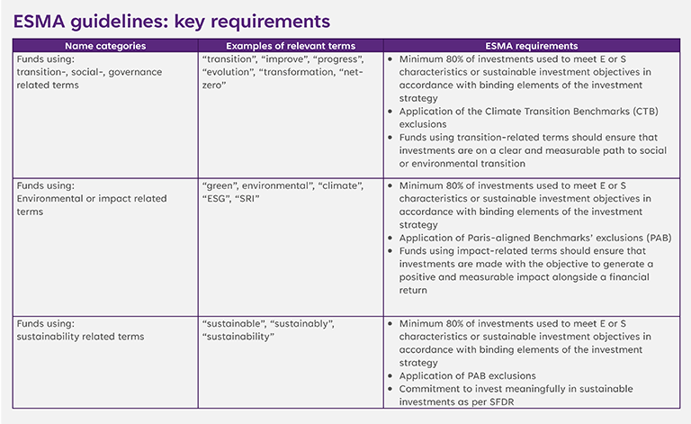 The new guidelines include several key requirements for funds using ESG- or sustainability-related language in their names.