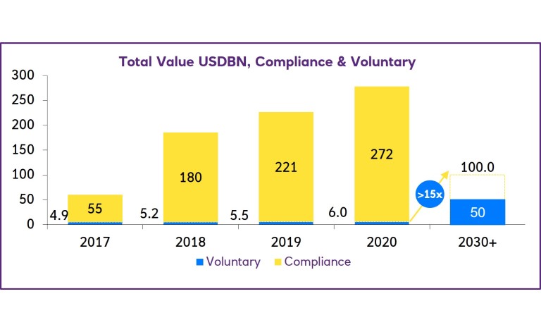 Source: NatWest analysis; McKinsey: A blueprint for scaling voluntary carbon markets to meet the climate challenge; Ecosystem Marketplace