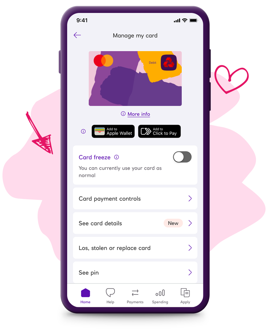 Easy tracking in our app. Pay your mates (ages 16+), freeze your debit card, and check balances on the go.