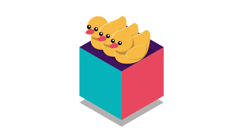image of a white duck sandwiched between and identical pink duck