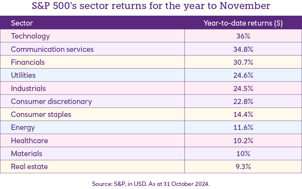 2024 did come with its uncertainties though. It was a year defined by elections, a new Labour government’s Budget and geopolitical tensions. In November, Donald Trump won the US presidential election along with the Republicans winning the majority of seats in Congress. This will make it easier for Trump to action legislation like tax reforms, deregulation plans and shifts on trade policies from next year.