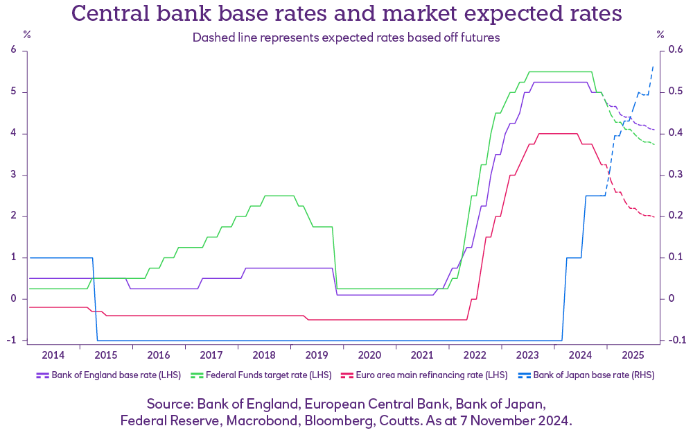 For the UK, the rollout of the Labour government’s autumn Budget will be closely watched as fiscal policies, which were designed to stabilise public finances, could see inflation accelerate above 2% again. This has caused some concerns over how the Bank of England will manage the roadmap for bringing down interest rates in 2025.